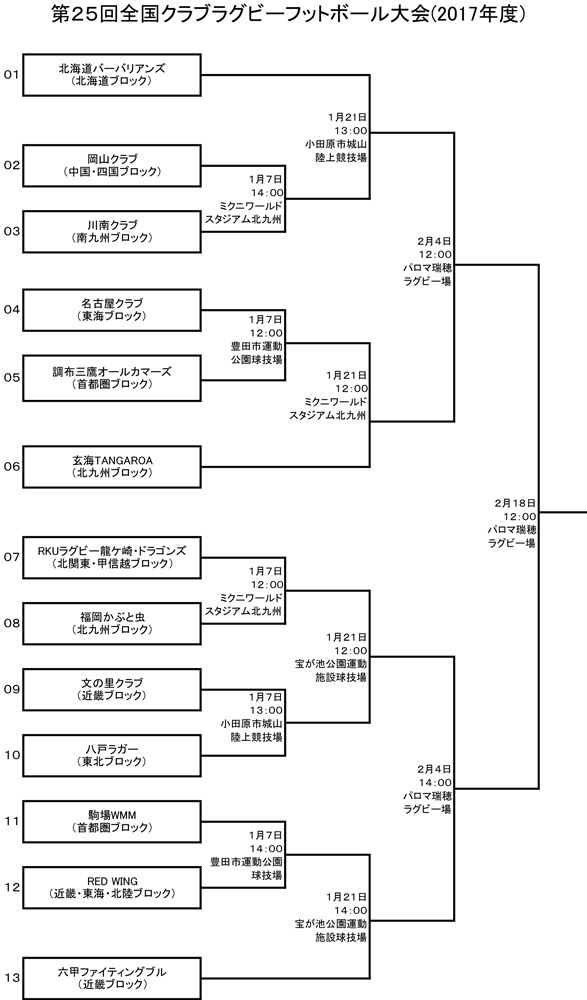> 第25回全国クラブ大会1回戦・2回戦〔1月7日・21日〕/試合案内