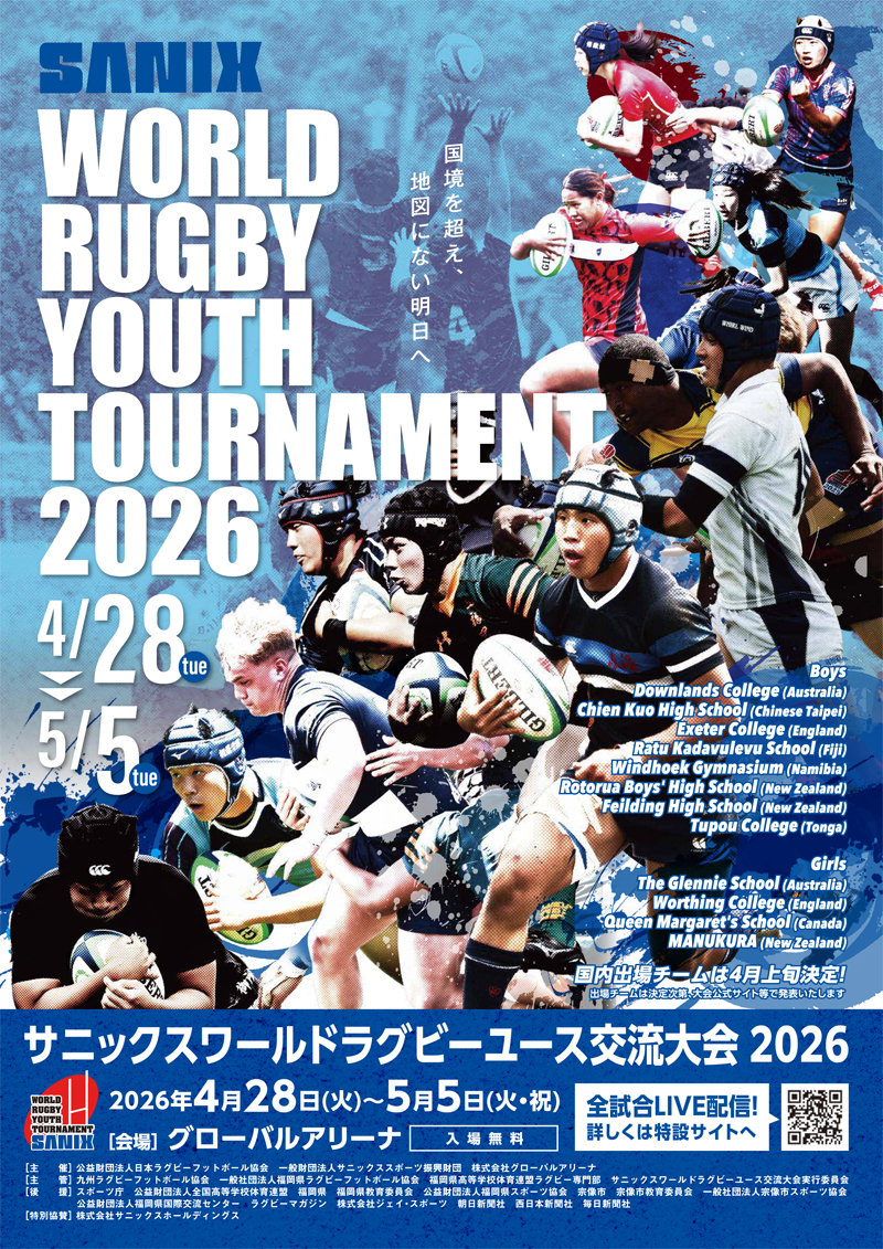 4月28日(火)から5月5日(火・祝)まで、福岡県・グローバルアリーナにおいて「サニックスワールドラグビーユース交流大会2026(SANIX WORLD RUGBY YOUTH TOURNAMENT 2026)が開催されます。
